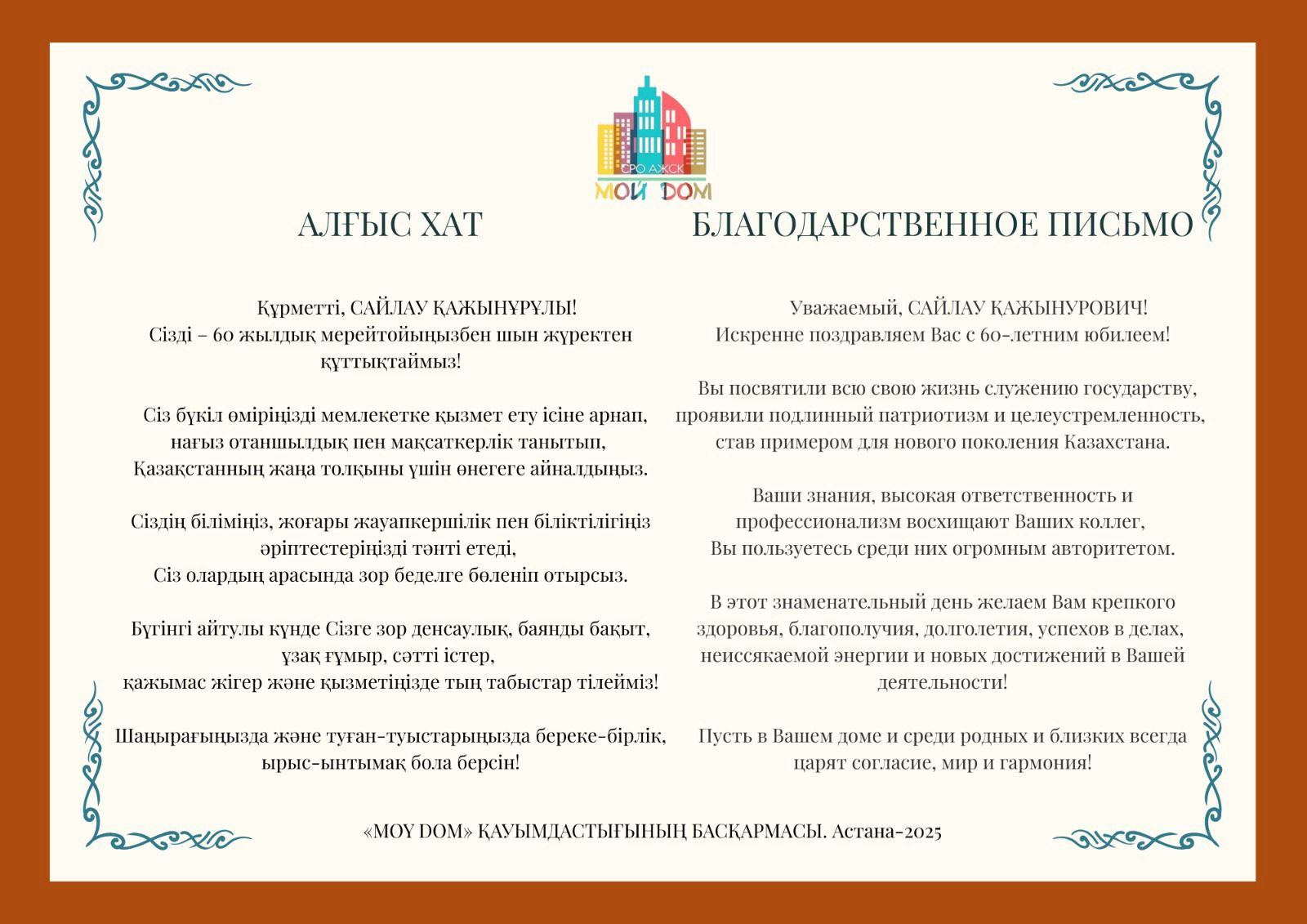 Без рубрикиБлагодарственное письмо САЙЛАУ ҚАЖЫНУРОВИЧУ! admin19 декабря, 202519 декабря, 202501 mins 357f549f-0bcd-471d-9029-57b9e3124005Скачать Навигация по записям Предыдущая: НПА за октябрь Добавить комментарий Отменить ответВаш адрес email не будет опубликован. Обязательные поля помечены *Комментарий * Имя * Email * Сайт Сохранить моё имя, email и адрес сайта в этом браузере для последующих моих комментариев.